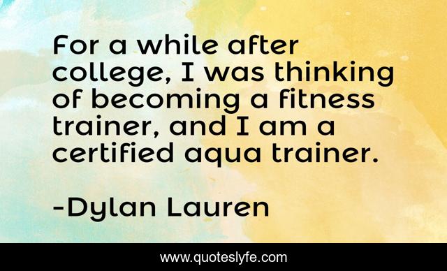 This page presents the quote "For a while after college, I was thinking of becoming a fitness trainer, and I am a certified aqua trainer.". Author of this quote is Dylan Lauren. This quote is about thinking, college,.