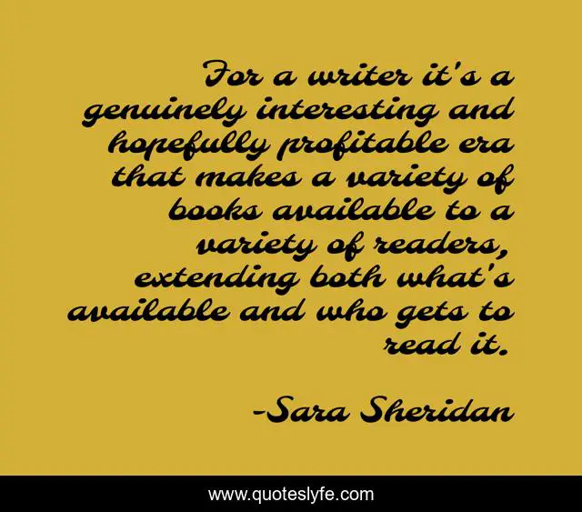 This page presents the quote "For a writer it's a genuinely interesting and hopefully profitable era that makes a variety of books available to a variety of readers, extending both what's available and who gets to read it.". Author of this quote is Sara Sheridan. This quote is about publishing, industry, writer, writing, books, market, ebooks,.