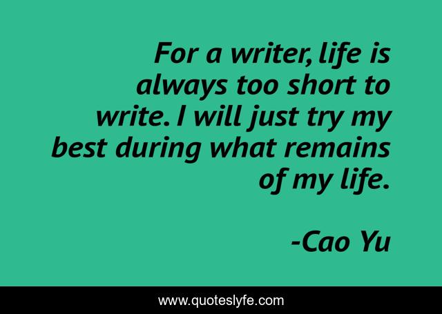 This page presents the quote "For a writer, life is always too short to write. I will just try my best during what remains of my life.". Author of this quote is Cao Yu. This quote is about life, short, remains, writer, try, best,.