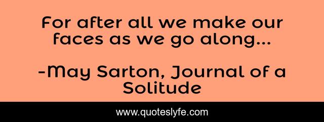 This page presents the quote "For after all we make our faces as we go along...". Author of this quote is May Sarton, Journal of a Solitude. .