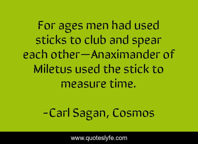 This page presents the quote "For ages men had used sticks to club and spear each other—Anaximander of Miletus used the stick to measure time.". Author of this quote is Carl Sagan, Cosmos. This quote is about science, time,.