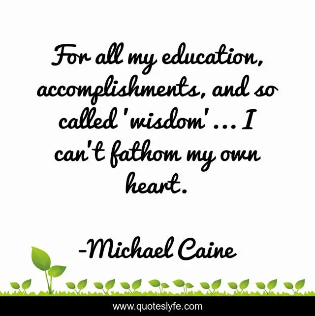 This page presents the quote "For all my education, accomplishments, and so called 'wisdom'... I can't fathom my own heart.". Author of this quote is Michael Caine. This quote is about heart, education, my own,.