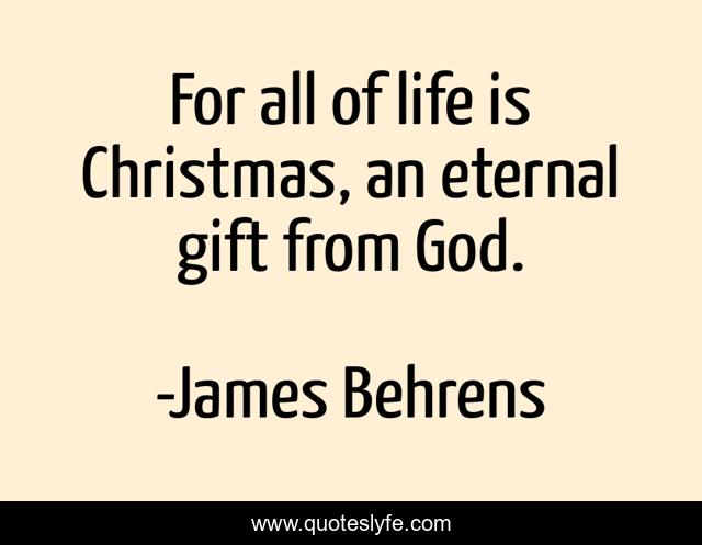 This page presents the quote "For all of life is Christmas, an eternal gift from God.". Author of this quote is James Behrens. .