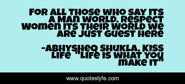 For all those who say its a Man world. Respect Women Its their World we are just guest here
