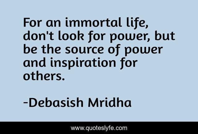 This page presents the quote "For an immortal life, don't look for power, but be the source of power and inspiration for others.". Author of this quote is Debasish Mridha. This quote is about life, love, knowledge, inspirational, intelligence, philosophy, wisdom, quotes, affection,.