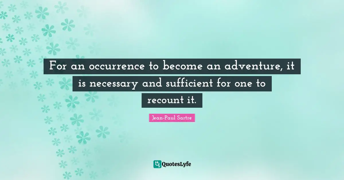 This page presents the quote "For an occurrence to become an adventure, it is necessary and sufficient for one to recount it.". Author of this quote is Jean-Paul Sartre. This quote is about story, adventure,.
