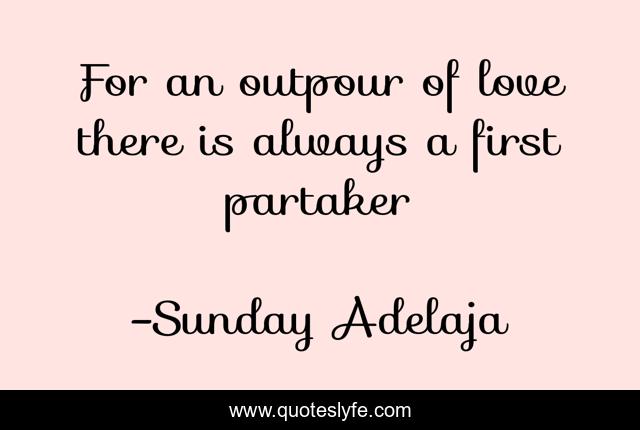This page presents the quote "For an outpour of love there is always a first partaker". Author of this quote is Sunday Adelaja. This quote is about love, standard-of-truth, outpour-of-love, real-life, affection, mindset,.