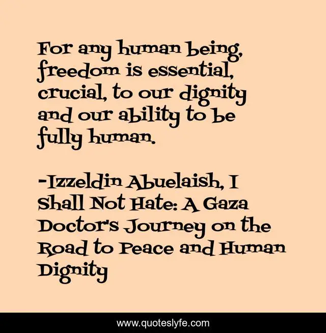 "Izzeldin Abuelaish, I Shall Not Hate: A Gaza Doctor's Journey on the Road to Peace and Human Dignity Quotes." Quoteslyfe.com, 2025. Mon. 08 Dec. 2025. <https://www.quoteslyfe.com/quote/For-any-human-being-freedom-is-essential-54520>.