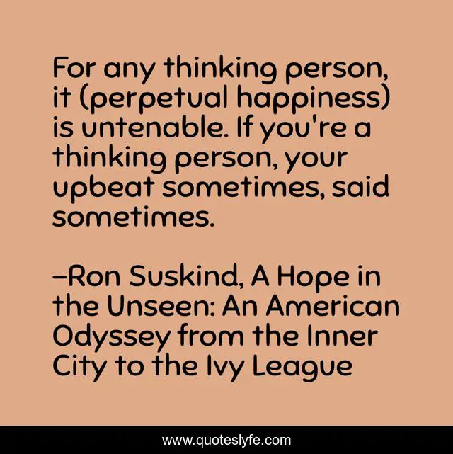 "Ron Suskind, A Hope in the Unseen: An American Odyssey from the Inner City to the Ivy League Quotes." Quoteslyfe.com, 2025. Sat. 06 Dec. 2025. <https://www.quoteslyfe.com/quote/For-any-thinking-person-it-perpetual-happiness-162115>.