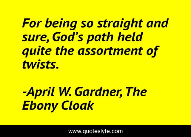 This page presents the quote "For being so straight and sure, God’s path held quite the assortment of twists.". Author of this quote is April W. Gardner, The Ebony Cloak. This quote is about native-american, christian, historical-romance,.
