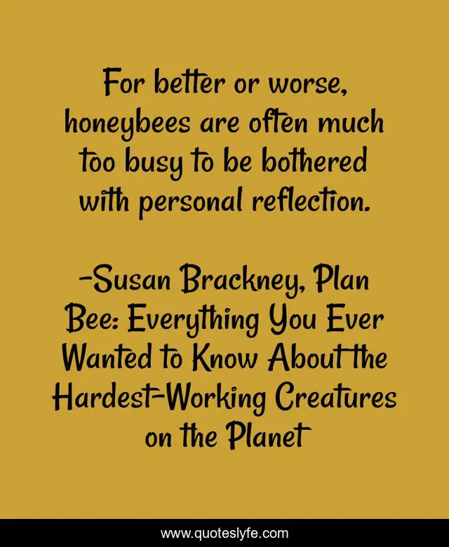 "Susan Brackney, Plan Bee: Everything You Ever Wanted to Know About the Hardest-Working Creatures on the Planet Quotes." Quoteslyfe.com, 2025. Sun. 07 Dec. 2025. <https://www.quoteslyfe.com/quote/For-better-or-worse-honeybees-are-often-72904>.