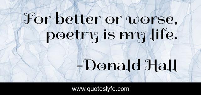 This page presents the quote "For better or worse, poetry is my life.". Author of this quote is Donald Hall. This quote is about better, life, my life,.