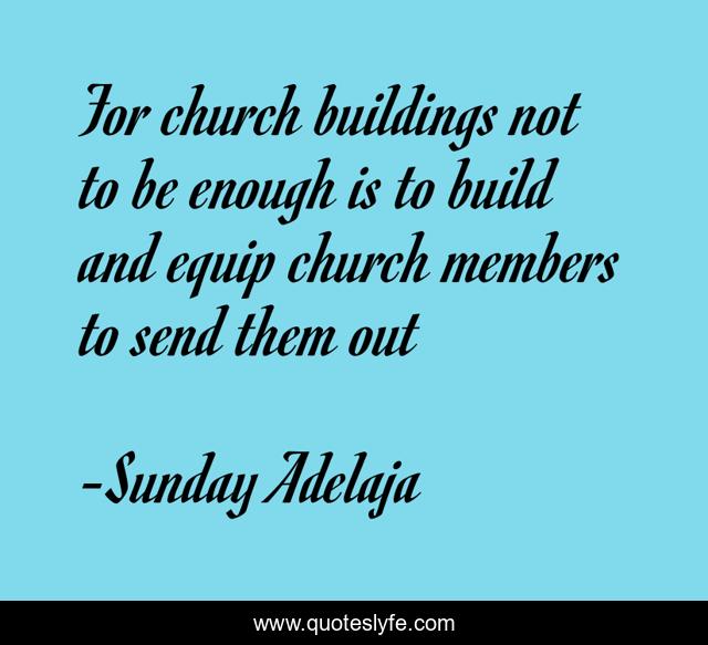This page presents the quote "For church buildings not to be enough is to build and equip church members to send them out". Author of this quote is Sunday Adelaja. This quote is about building, equip, member, build, church,.