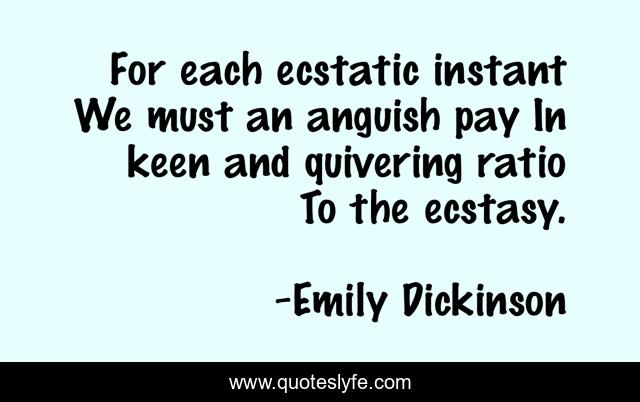 This page presents the quote "For each ecstatic instant We must an anguish pay In keen and quivering ratio To the ecstasy.". Author of this quote is Emily Dickinson. .