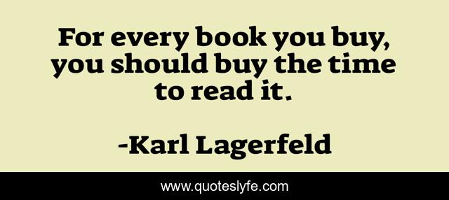 This page presents the quote "For every book you buy, you should buy the time to read it.". Author of this quote is Karl Lagerfeld. This quote is about books, reading, time,.