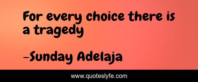 This page presents the quote "For every choice there is a tragedy". Author of this quote is Sunday Adelaja. This quote is about knowledge-of-life, tragedy, truth, choice,.