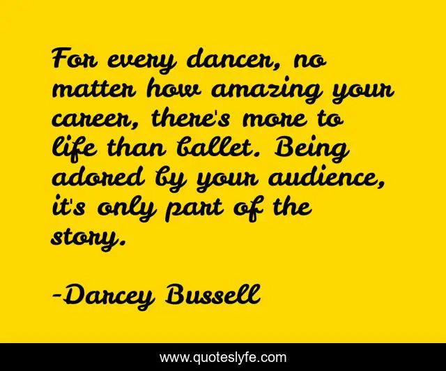 This page presents the quote "For every dancer, no matter how amazing your career, there's more to life than ballet. Being adored by your audience, it's only part of the story.". Author of this quote is Darcey Bussell. This quote is about life, story, ballet,.