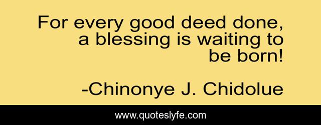 "Chinonye J. Chidolue Quotes." Quoteslyfe.com, 2025. Fri. 05 Dec. 2025. <https://www.quoteslyfe.com/quote/For-every-good-deed-done-a-blessing-136438>.