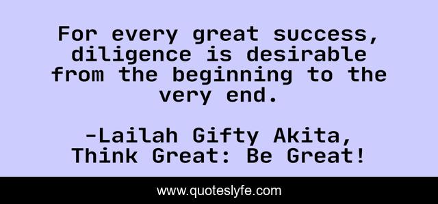 "Lailah Gifty Akita, Think Great: Be Great! Quotes." Quoteslyfe.com, 2025. Mon. 08 Dec. 2025. <https://www.quoteslyfe.com/quote/For-every-great-success-diligence-is-desirable-34656>.