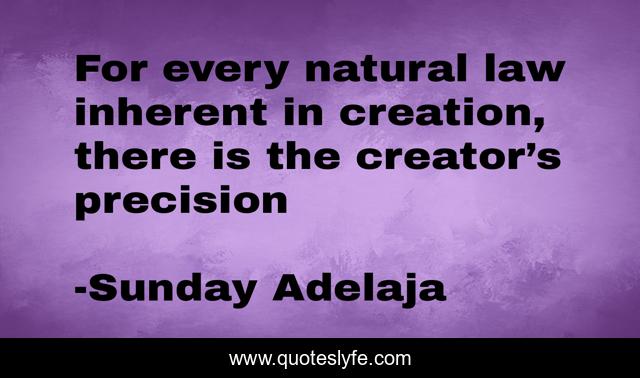 This page presents the quote "For every natural law inherent in creation, there is the creator’s precision". Author of this quote is Sunday Adelaja. This quote is about inherent, creation, natural, precision, law,.