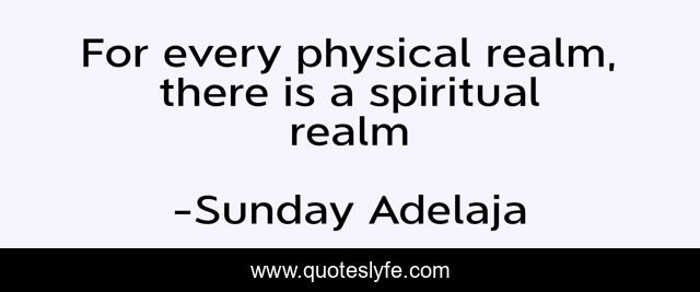 This page presents the quote "For every physical realm, there is a spiritual realm". Author of this quote is Sunday Adelaja. This quote is about spiritual, realm, truth, physical,.