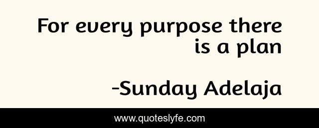 This page presents the quote "For every purpose there is a plan". Author of this quote is Sunday Adelaja. This quote is about reality-of-life, reality, plan-of-life, purpose, purpose-of-life, plan,.
