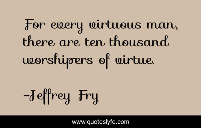 This page presents the quote "For every virtuous man, there are ten thousand worshipers of virtue.". Author of this quote is Jeffrey Fry. This quote is about worshipers, ten-thousand, virtue, virtuous-man, for-every,.