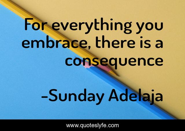 This page presents the quote "For everything you embrace, there is a consequence". Author of this quote is Sunday Adelaja. This quote is about consequence, everything, embrace, fact, truth,.