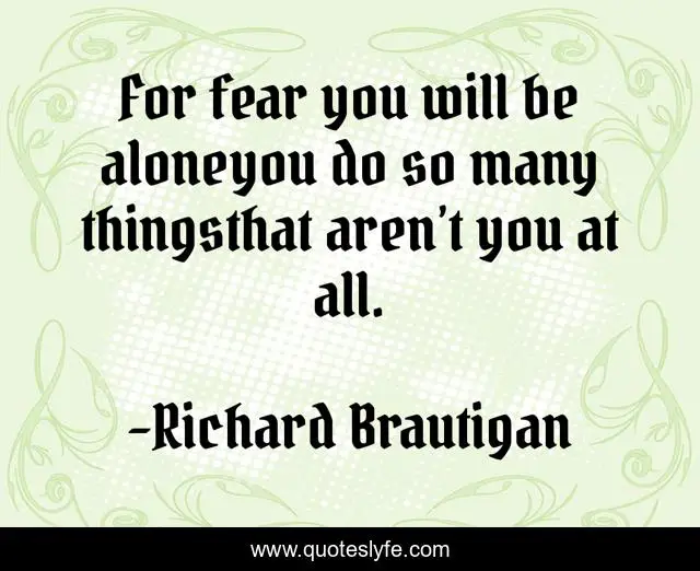 This page presents the quote "For fear you will be aloneyou do so many thingsthat aren’t you at all.". Author of this quote is Richard Brautigan. This quote is about alone, loneliness,.