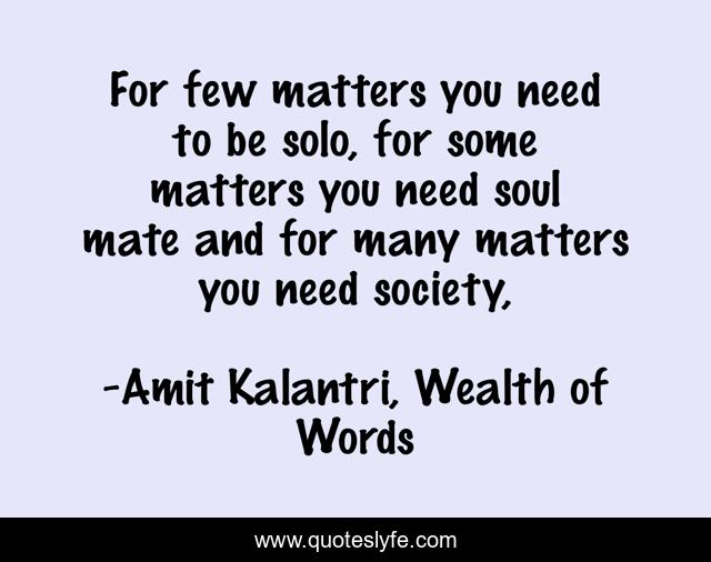 For few matters you need to be solo, for some matters you need soul mate and for many matters you need society,
