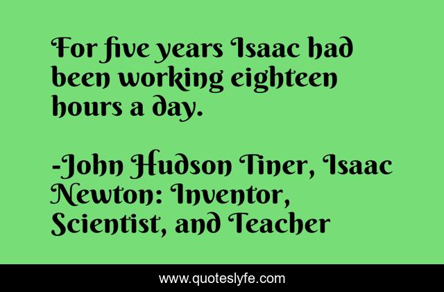 This page presents the quote "For five years Isaac had been working eighteen hours a day.". Author of this quote is John Hudson Tiner, Isaac Newton: Inventor, Scientist, and Teacher. .