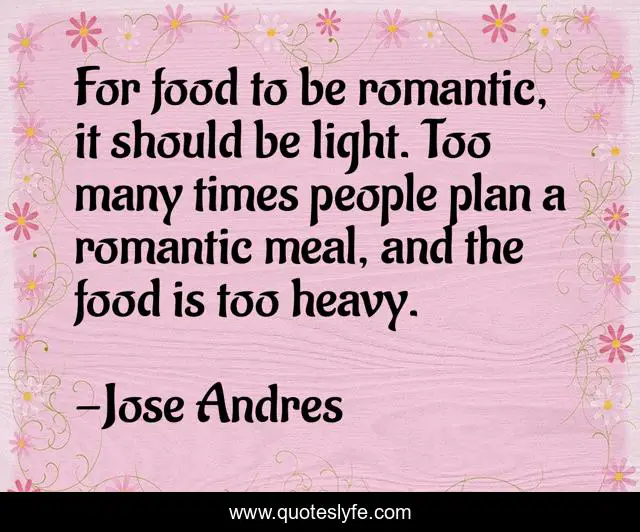 "Jose Andres Quotes." Quoteslyfe.com, 2025. Sat. 06 Dec. 2025. <https://www.quoteslyfe.com/quote/For-food-to-be-romantic-it-should-324618>.