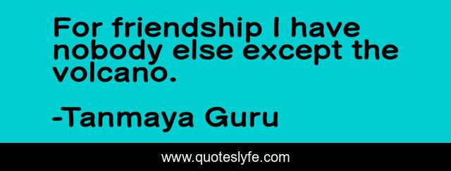 This page presents the quote "For friendship I have nobody else except the volcano.". Author of this quote is Tanmaya Guru. .