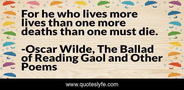 "Oscar Wilde, The Ballad of Reading Gaol and Other Poems Quotes." Quoteslyfe.com, 2025. Fri. 05 Dec. 2025. <https://www.quoteslyfe.com/quote/For-he-who-lives-more-lives-than-21080>.