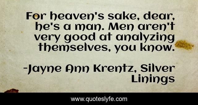 "Jayne Ann Krentz, Silver Linings Quotes." Quoteslyfe.com, 2025. Mon. 08 Dec. 2025. <https://www.quoteslyfe.com/quote/For-heaven-s-sake-dear-he-s-127435>.