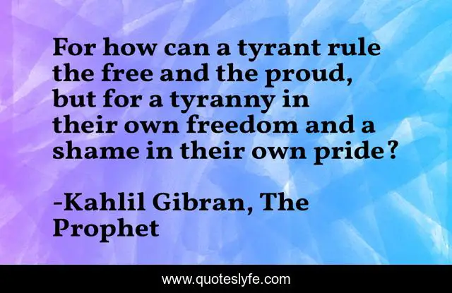 "Kahlil Gibran, The Prophet Quotes." Quoteslyfe.com, 2025. Sat. 13 Dec. 2025. <https://www.quoteslyfe.com/quote/For-how-can-a-tyrant-rule-the-55143>.