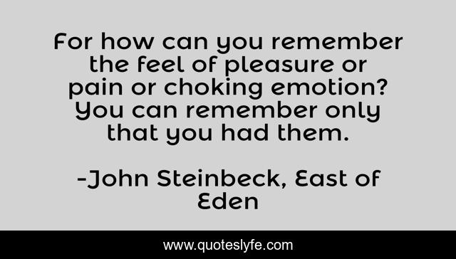 This page presents the quote "For how can you remember the feel of pleasure or pain or choking emotion? You can remember only that you had them.". Author of this quote is John Steinbeck, East of Eden. .