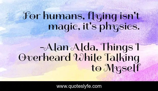 This page presents the quote "For humans, flying isn't magic, it's physics.". Author of this quote is Alan Alda, Things I Overheard While Talking to Myself. This quote is about action, steps, achievement,.