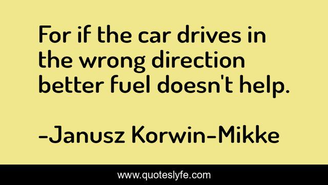 This page presents the quote "For if the car drives in the wrong direction better fuel doesn't help.". Author of this quote is Janusz Korwin-Mikke. This quote is about spending, european-union, socialism, government,.