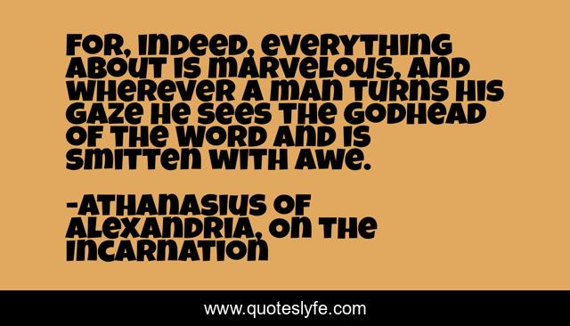 "Athanasius of Alexandria, On the Incarnation Quotes." Quoteslyfe.com, 2025. Sun. 07 Dec. 2025. <https://www.quoteslyfe.com/quote/For-indeed-everything-about-is-marvelous-and-134561>.