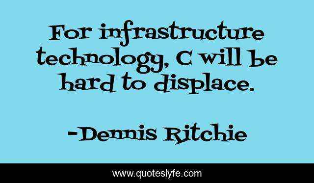 This page presents the quote "For infrastructure technology, C will be hard to displace.". Author of this quote is Dennis Ritchie. This quote is about infrastructure, hard,.