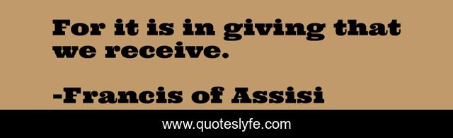 This page presents the quote "For it is in giving that we receive.". Author of this quote is Francis of Assisi. This quote is about giving, generosity, kindness,.