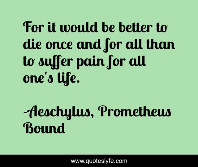 This page presents the quote "For it would be better to die once and for all than to suffer pain for all one's life.". Author of this quote is Aeschylus, Prometheus Bound. This quote is about better, die, suffer, pain,.