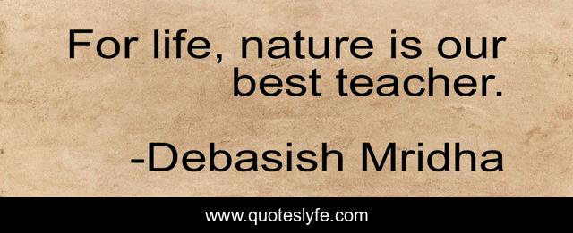This page presents the quote "For life, nature is our best teacher.". Author of this quote is Debasish Mridha. This quote is about life, nature, philosophy, debasish-mridha, debasish-mridha-m-d, quotes, inspirational, enthusiasm, teacher,.
