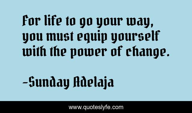This page presents the quote "For life to go your way, you must equip yourself with the power of change.". Author of this quote is Sunday Adelaja. This quote is about life, change, power,.