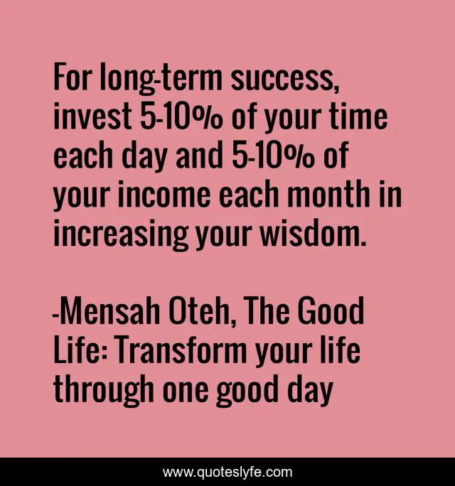 "Mensah Oteh, The Good Life: Transform your life through one good day Quotes." Quoteslyfe.com, 2025. Tue. 09 Dec. 2025. <https://www.quoteslyfe.com/quote/For-long-term-success-invest-5-10-48969>.
