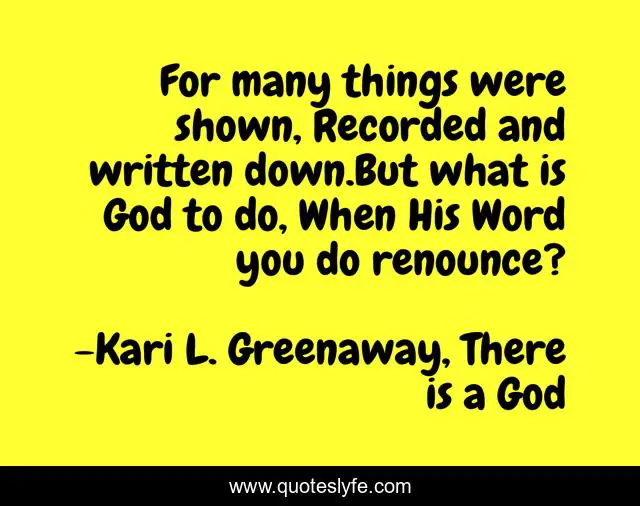 "Kari L. Greenaway, There is a God Quotes." Quoteslyfe.com, 2025. Sun. 07 Dec. 2025. <https://www.quoteslyfe.com/quote/For-many-things-were-shown-Recorded-and-166513>.