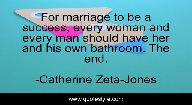 This page presents the quote "For marriage to be a success, every woman and every man should have her and his own bathroom. The end.". Author of this quote is Catherine Zeta-Jones. This quote is about woman, success, man,.
