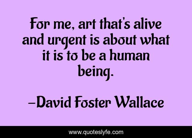 This page presents the quote "For me, art that's alive and urgent is about what it is to be a human being.". Author of this quote is David Foster Wallace. This quote is about writing, art, writing-advice,.