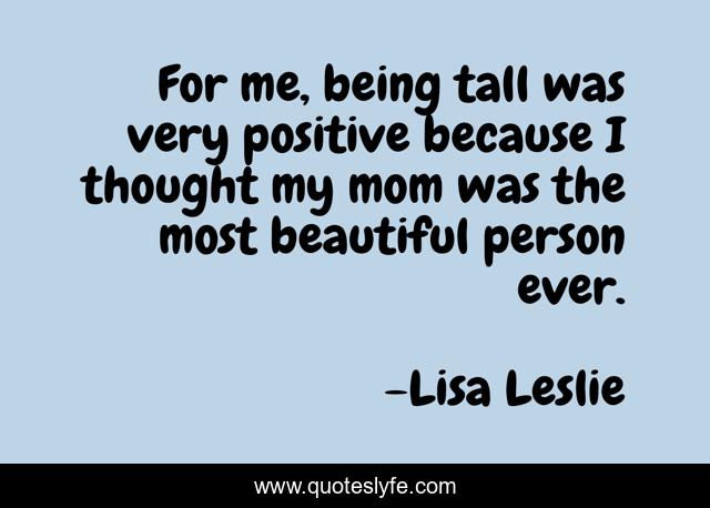 This page presents the quote "For me, being tall was very positive because I thought my mom was the most beautiful person ever.". Author of this quote is Lisa Leslie. This quote is about beautiful, me, mom,.